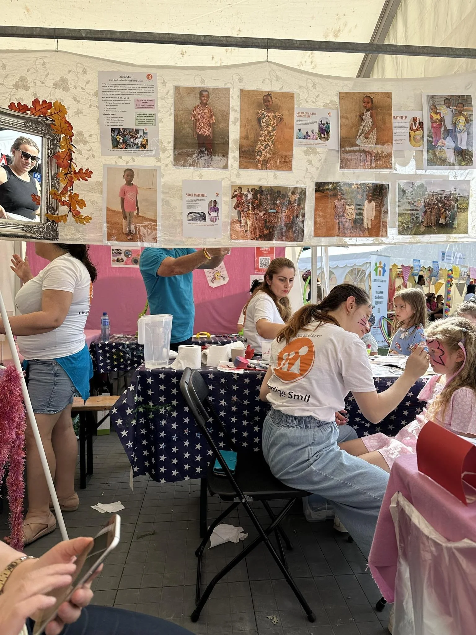 Mens et av barnet til Magdi fikk ansiktsmaling, utforsket det andre barnet produkter vi hadde til salgs, og lærte om fadderordningen vår.